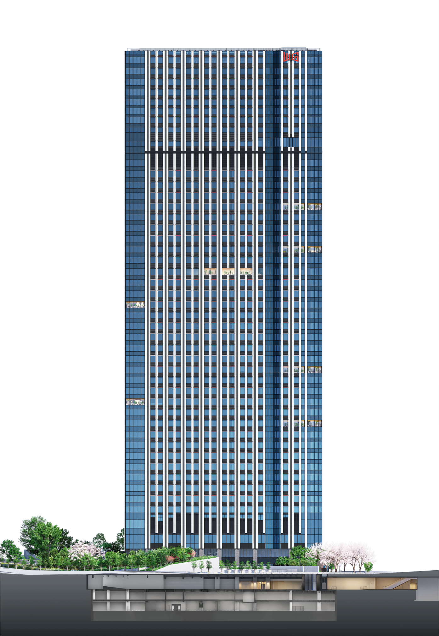当プロジェクトは、「NTTグループ保有資産の活用」により、緑豊かな敷地に多彩な機能を集約した大規模複合開発タワーを実現しています。先進的なオフィス空間と多彩な機能により、オフィスワーカーの“WELL-BEING”なワークスタイルをサポートします。
