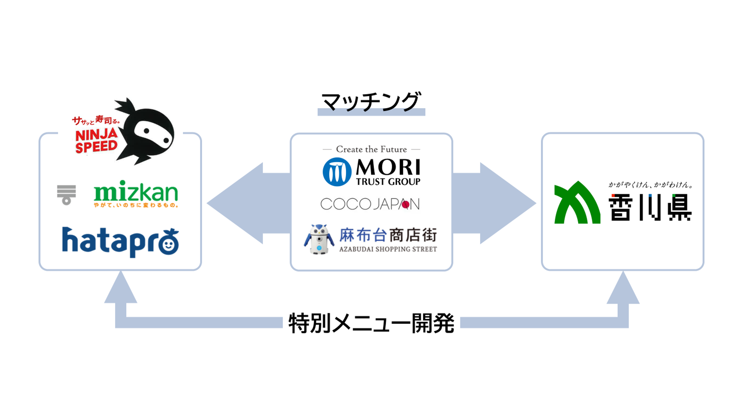 ミツカングループ(以下、ミツカン)とハタプログループ(以下、ハタプロ)が手掛ける寿司ファストフード「NINJA SPEED™」は、麻布台商店街および森トラストグループと連携し、東京ワールドゲート神谷町トラストタワー2階ラウンジにて2025年12月4日より実証販売を開始いたします。本実証販売において、森トラストグループが日本全国の逸品の魅力発信を目的に推進する「CoCo JAPAN」プロジェクトを通じ、香川県の特産品を活かした特別メニューを開発し、期間限定で販売いたします。