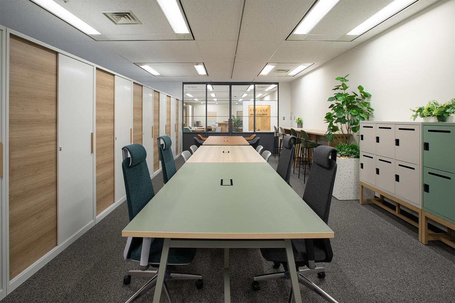 当社は15年ほど前からオフィス家具事業を展開し、近年ではオリジナルオフィスファニチャーブランドの「Work Plus by ASPLUND」を立ち上げました。移転に際しては本社オフィスのエントランスにショールームのような役割を持たせ、事業を後押しすることにもこだわりました。