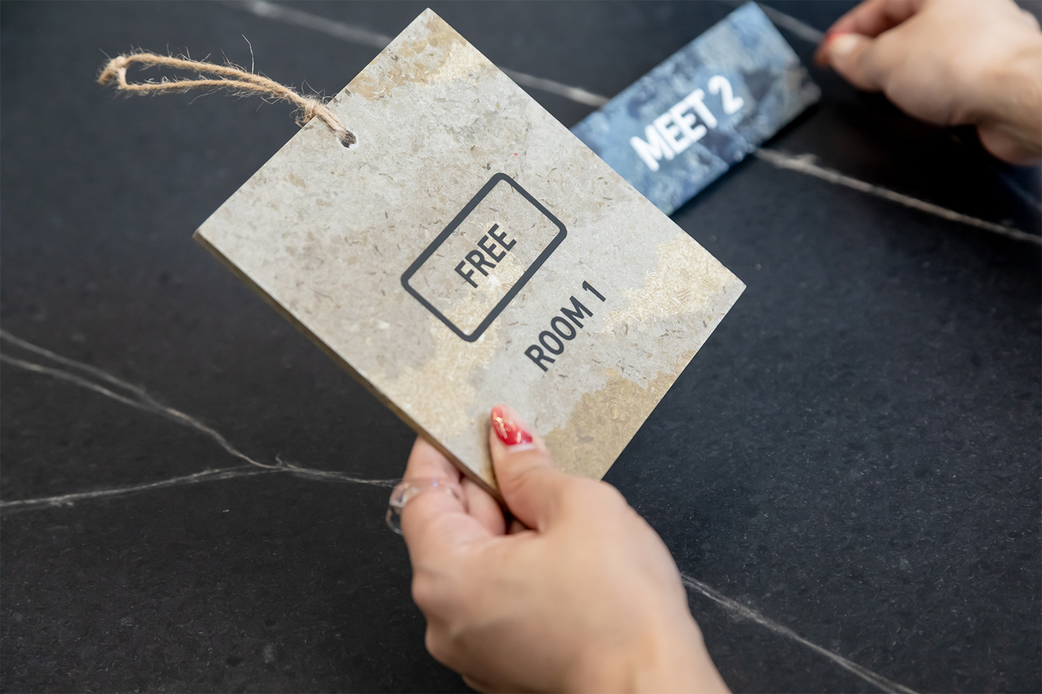 池田氏:会議室に使用しているテーブルの天板には、デニムの廃材を使用した「STELAPOP(ステラポップ)」というサステナブル素材を使用しています。家具業界ではサステナブル素材の使用が広がりつつあり、アスプルンドではこのSTELAPOPを独占輸入し、テーブルだけでなく、サインパネルやアートボード等様々な商品に展開をしています。同様に、革製品の廃材を再活用した「アップボーンレザー」の天板や、農業廃材を再活用した「ネイチャーズキャスト」という素材を使用したプランターカバーなどもオフィスに設置し、「素材のショールーム」としての機能も果たしています。