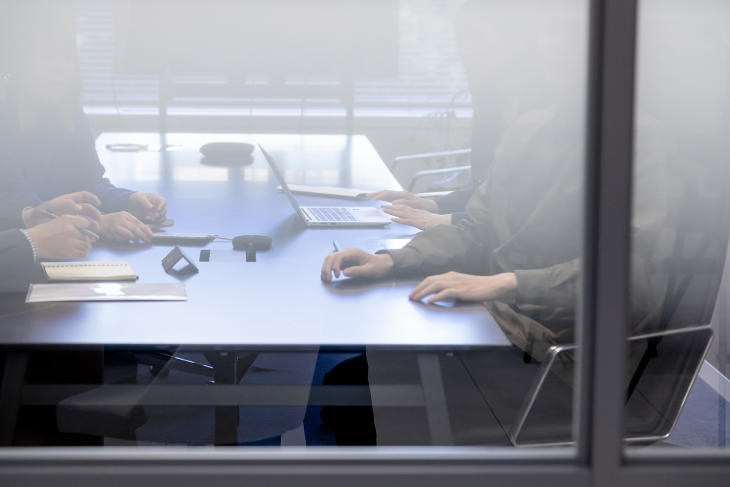 鈴木(貴)氏:会議室の扉は中が見えるようにガラス戸になっていますが、ちょうど顔の目線が来る位置には薄いスクリーントーンがグラデーションで入っているんです。社員の顔は見えないけれど、話している雰囲気は伝わる。このグラデーションの雰囲気が気に入っていますね。