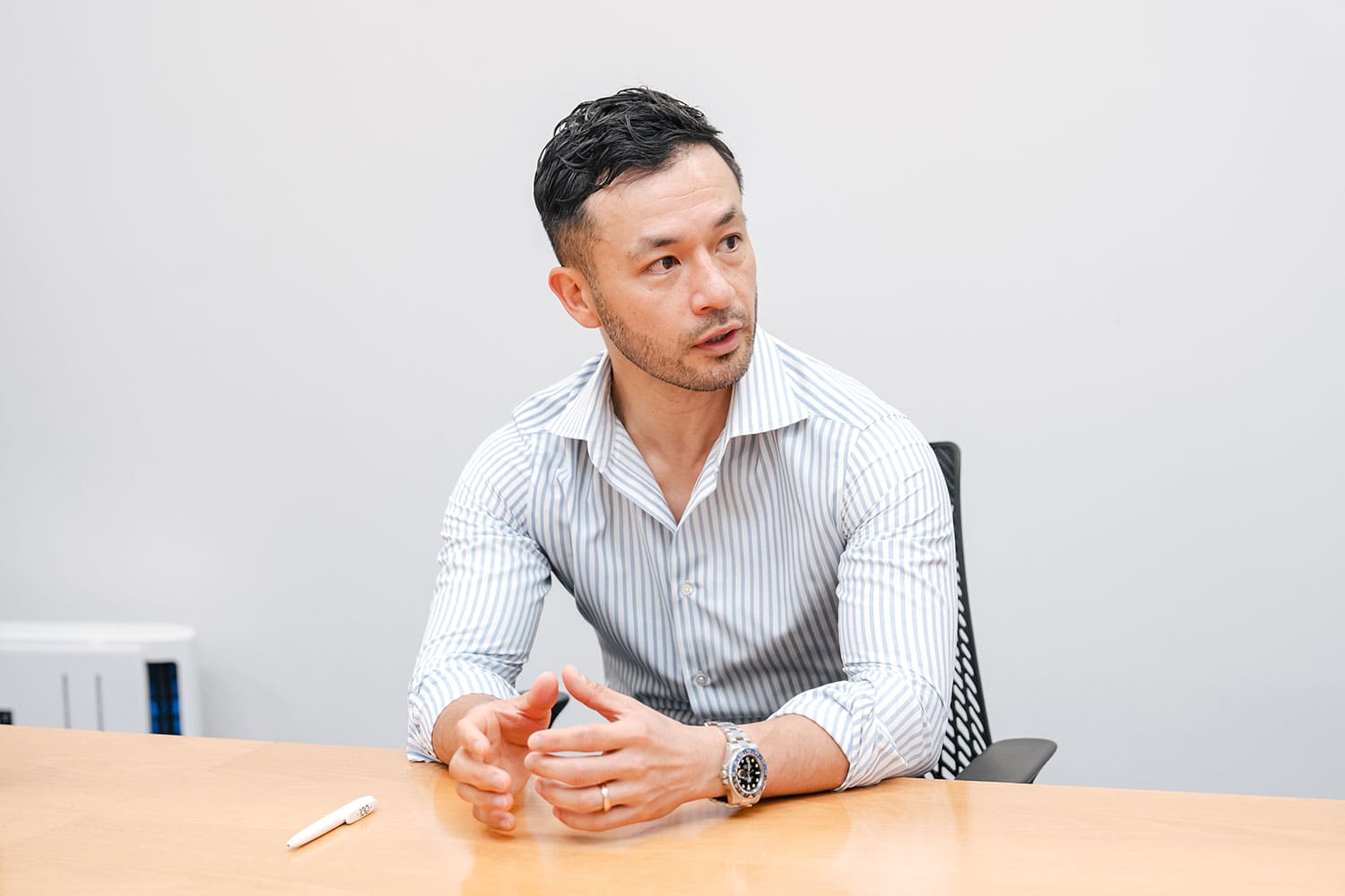 「オルデンドルフは日本だけでなく、世界21か所ある支店含めたグループ全体としてフラットな社風で働きやすい」と話されながら、丁寧に会社のご説明をしてくださる森さん。